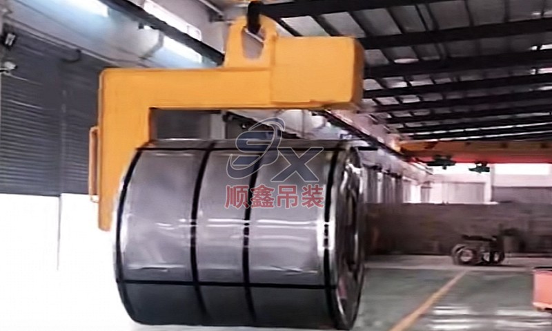 翻轉(zhuǎn)吊具通過機(jī)械剪力原理,對(duì)立式擺放的卷鋼進(jìn)行單邊抓取,來完成卷鋼的裝卸,當(dāng)改變重力點(diǎn)時(shí),可以對(duì)卷鋼進(jìn)行翻轉(zhuǎn),作業(yè)時(shí)不傷鋼卷。其吊耳采用加厚處理,焊縫飽滿牢固、延長(zhǎng)使用壽命。